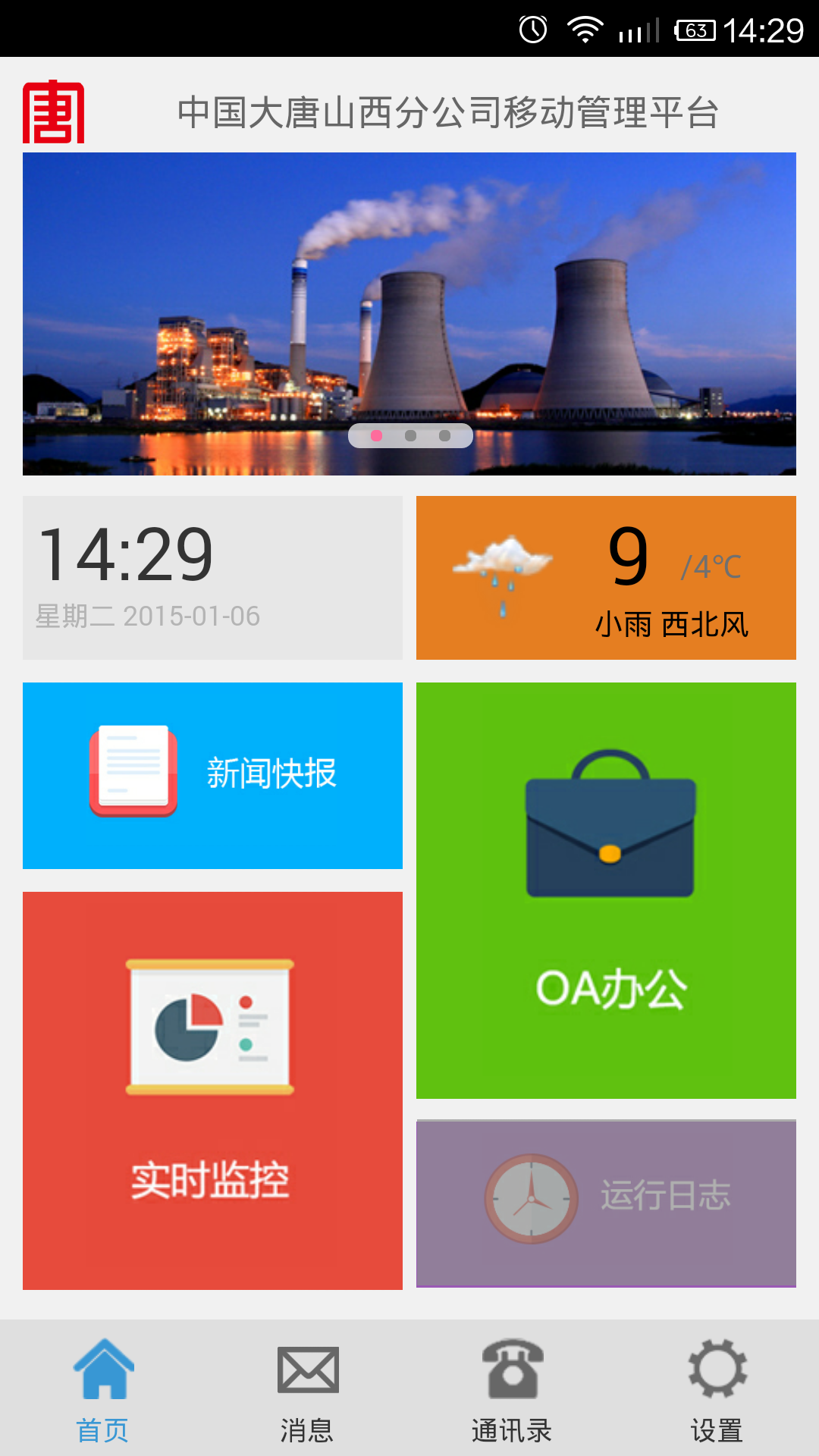 收发文件、通知公告、工作任务、通讯录 |